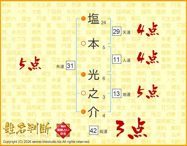 塩(24画)本(5画) 光(6画)之(3画)介(4画)