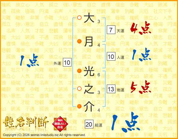 大月光之介さんの総運は20画の1点!