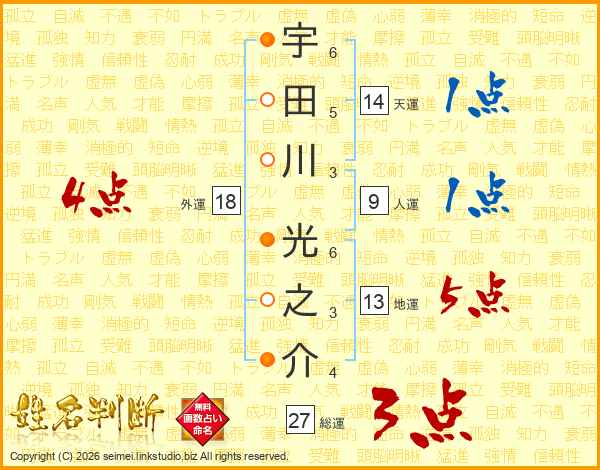 宇田川光之介さんの総運は27画の3点!