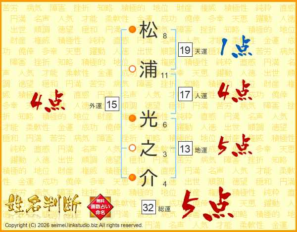 松浦光之介さんの総運は32画の5点!