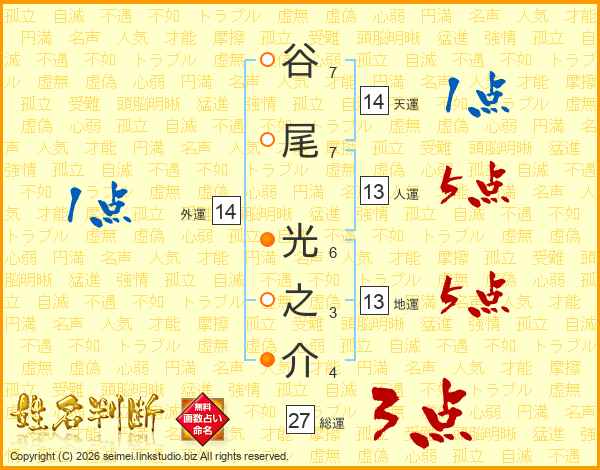 谷(7画)尾(7画) 光(6画)之(3画)介(4画)