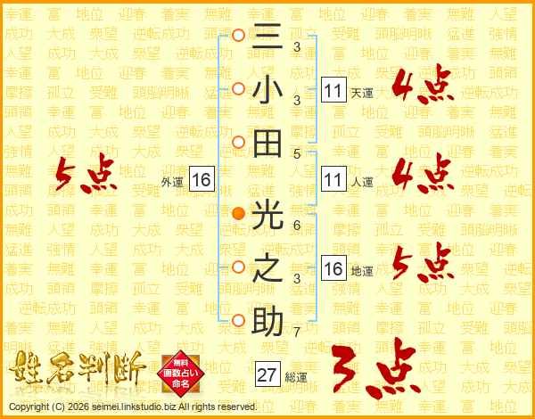 三(3画)小(3画)田(5画) 光(6画)之(3画)助(7画)