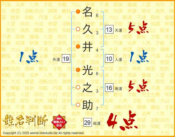 名(6画)久(3画)井(4画) 光(6画)之(3画)助(7画)