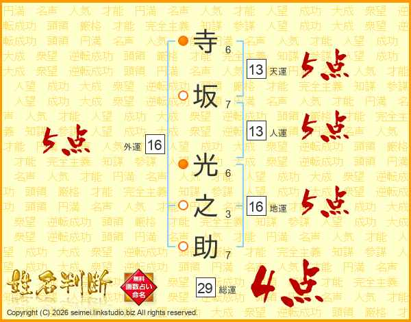 寺(6画)坂(7画) 光(6画)之(3画)助(7画)