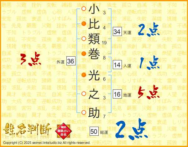 小比類巻光之助さんの総運は50画の2点!