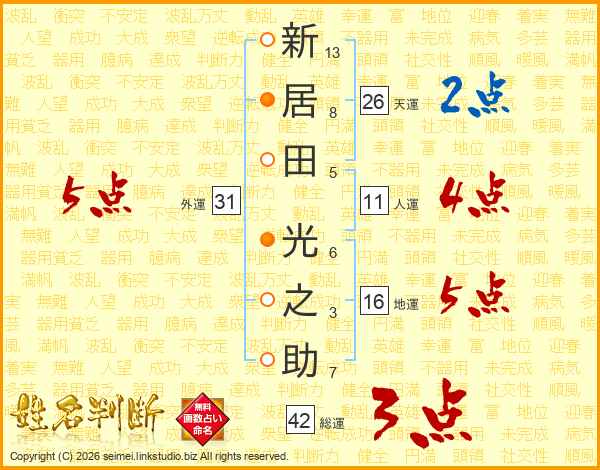 新居田光之助さんの天運は26画の2点!
