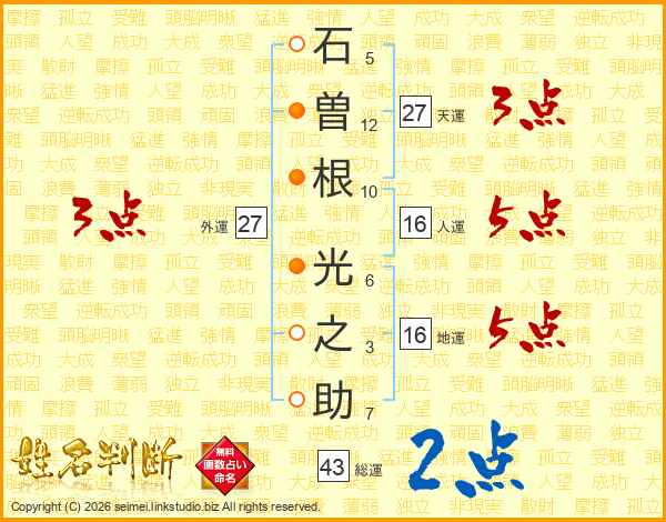 石曽根光之助さんの天運は27画の3点!
