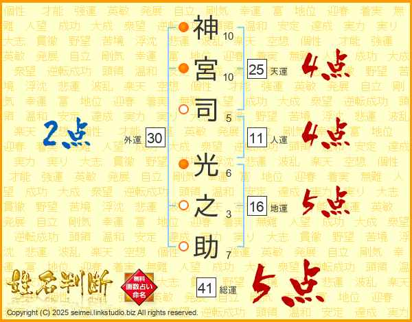 神(10画)宮(10画)司(5画) 光(6画)之(3画)助(7画)