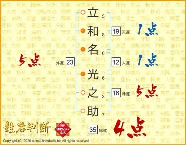 立和名光之助さんの総運は35画の4点!