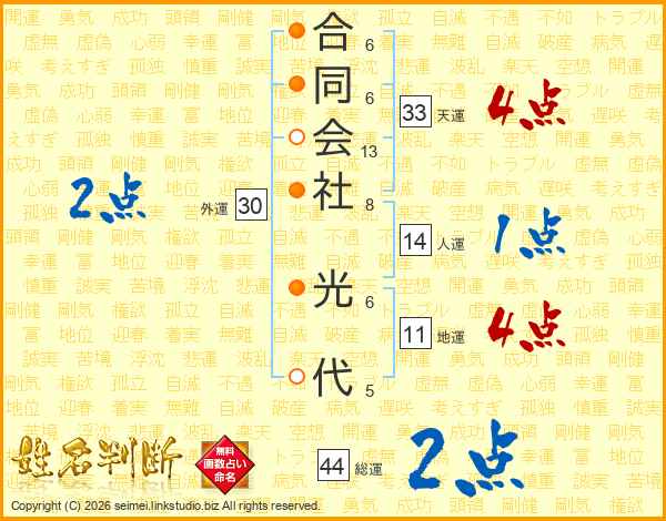合(6画)同(6画)会(13画)社(8画) 光(6画)代(5画)