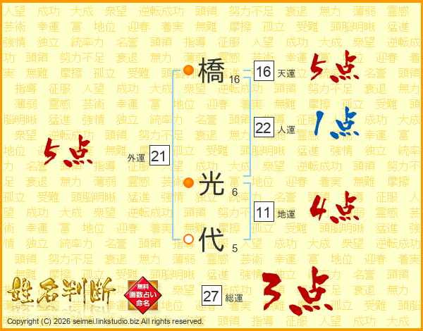 橋(16画) 光(6画)代(5画)