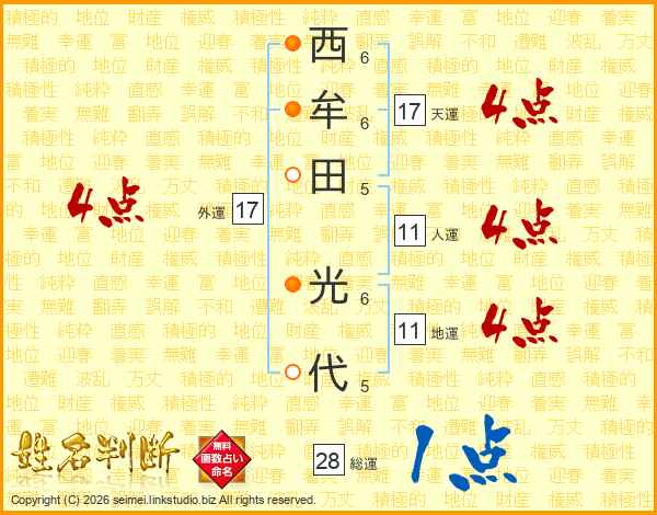 西(6画)牟(6画)田(5画) 光(6画)代(5画)