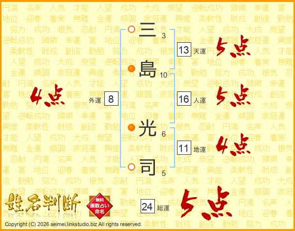 三島光司さんの総運は24画の5点!