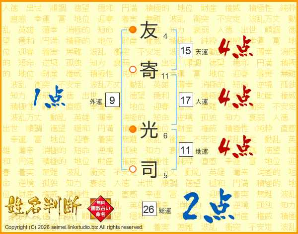 友寄光司さんの総運は26画の2点!