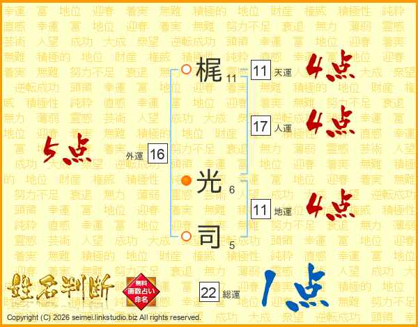 梶光司さんの地運は11画の4点!
