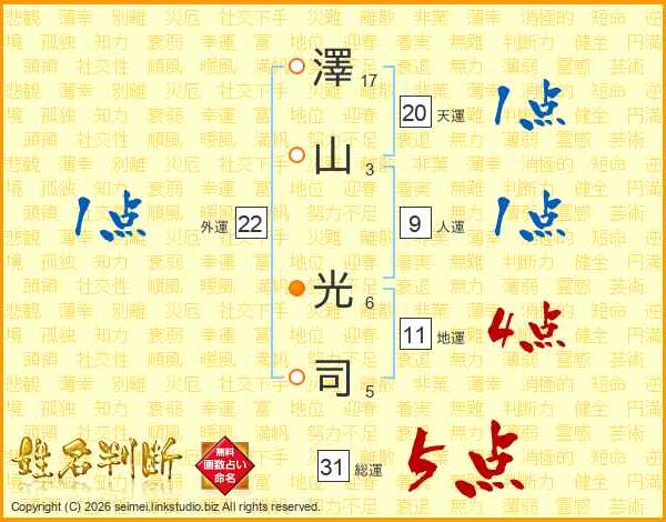 澤(17画)山(3画) 光(6画)司(5画)