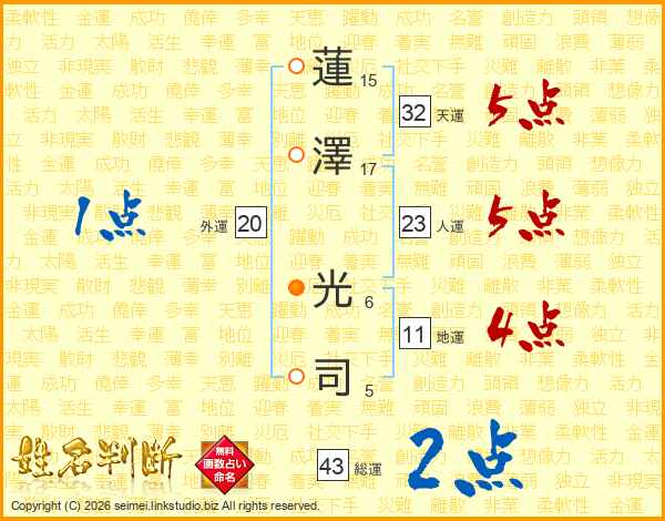 蓮(15画)澤(17画) 光(6画)司(5画)