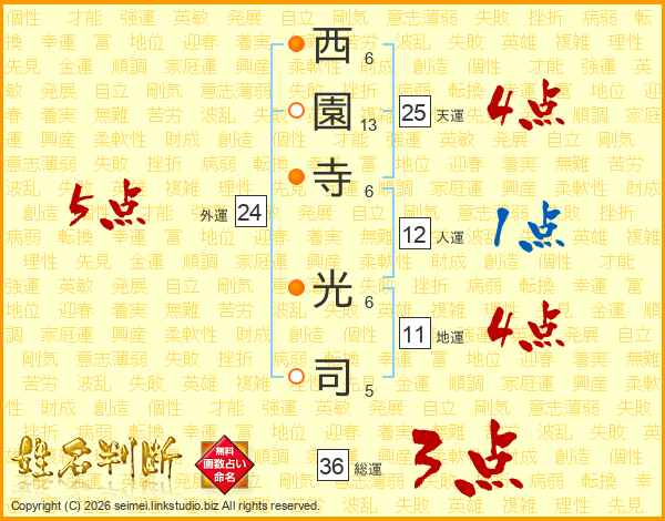 西園寺光司さんの総運は36画の3点!