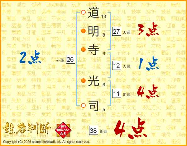 道(13画)明(8画)寺(6画) 光(6画)司(5画)