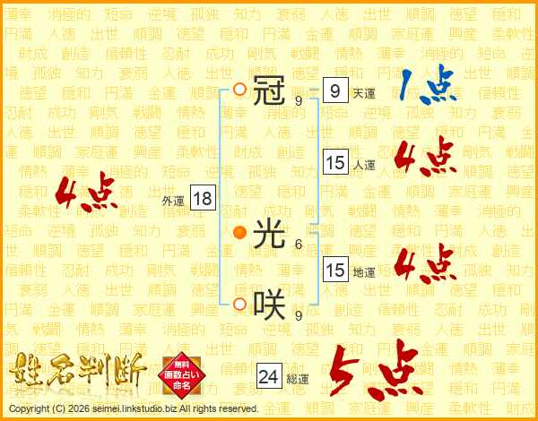 冠光咲さんの外運は18画の4点!