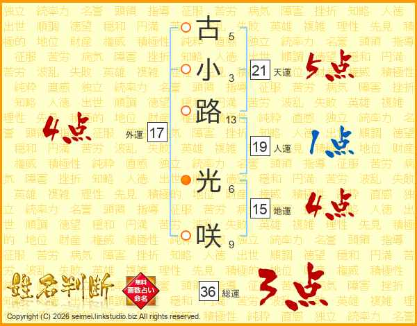 古小路光咲さんの天運は21画の5点!