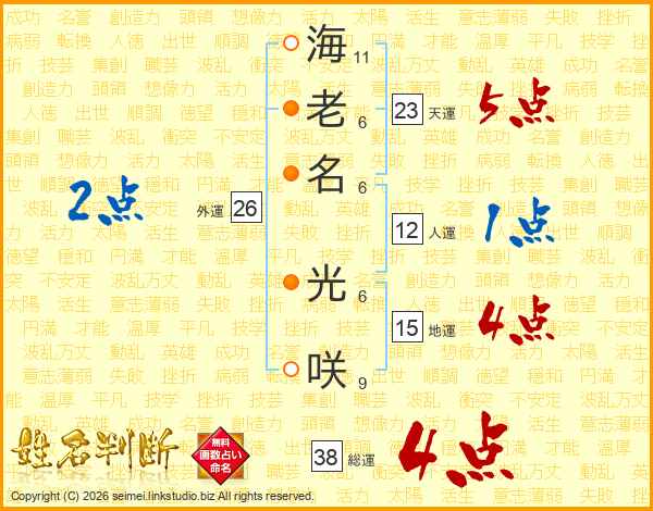 海老名光咲さんの外運は26画の2点!