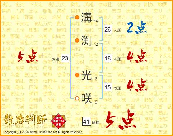 溝(14画)渕(12画) 光(6画)咲(9画)