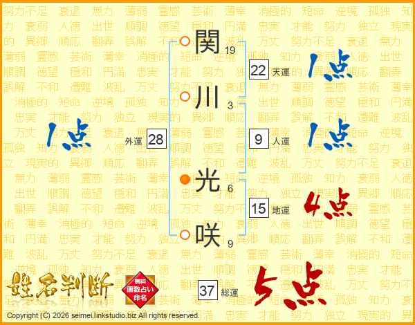 関川光咲さんの総運は37画の5点!