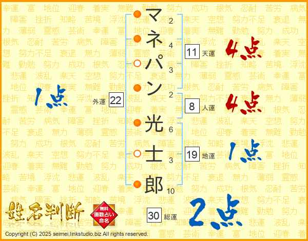 マネパン光士郎さんの天運は11画の4点!