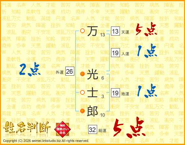 万光士郎さんの総運は32画の5点!