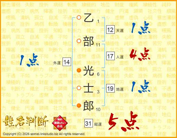 乙(1画)部(11画) 光(6画)士(3画)郎(10画)