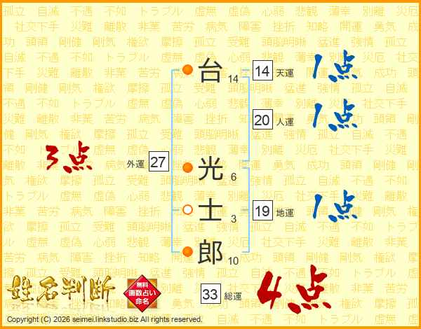 台光士郎さんの総運は33画の4点!