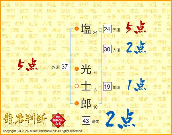 塩光士郎さんの総運は43画の2点!