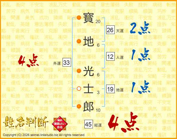 寳地光士郎さんの天運は26画の2点!