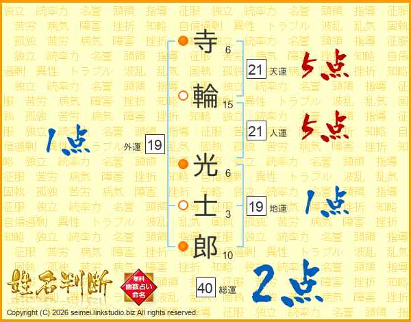 寺(6画)輪(15画) 光(6画)士(3画)郎(10画)