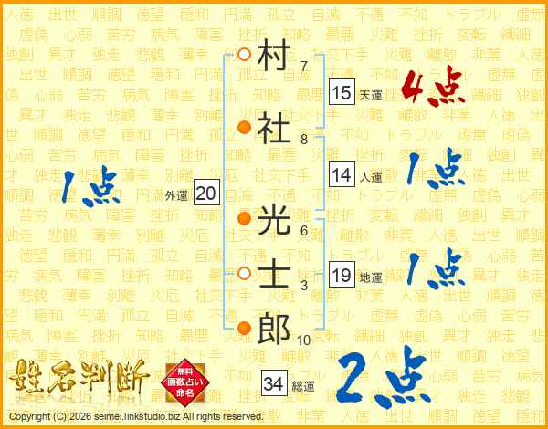 村(7画)社(8画) 光(6画)士(3画)郎(10画)