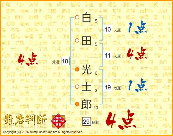 白田光士郎さんの総運は29画の4点!
