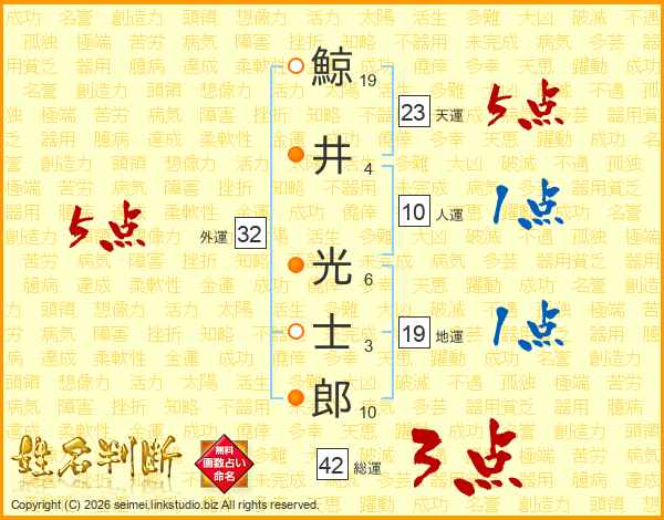 鯨(19画)井(4画) 光(6画)士(3画)郎(10画)