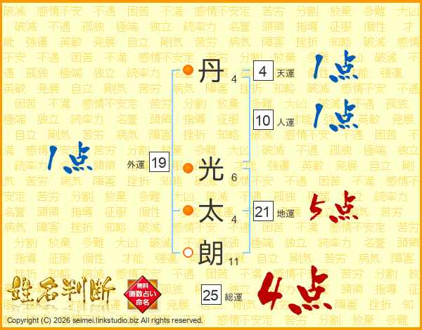 丹光太朗さんの地運は21画の5点!