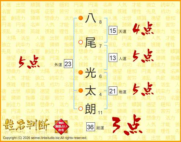 八尾光太朗さんの人運は13画の5点!