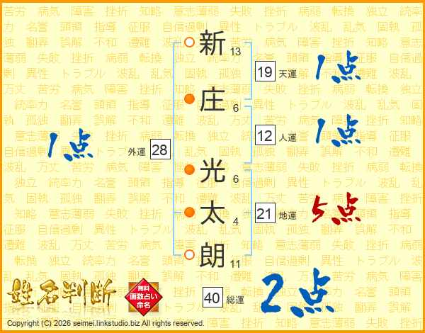 新庄光太朗さんの地運は21画の5点!