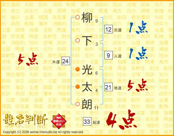柳下光太朗さんの総運は33画の4点!