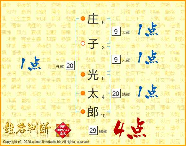 庄子光太郎さんの総運は29画の4点!