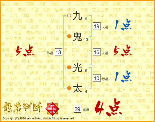 九鬼光太さんの総運は29画の4点!