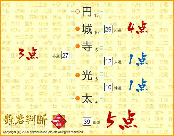 円城寺光太さんの総運は39画の5点!