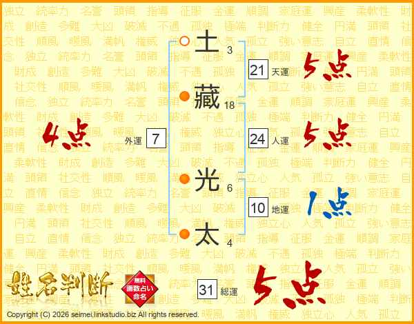 土藏光太さんの総運は31画の5点!