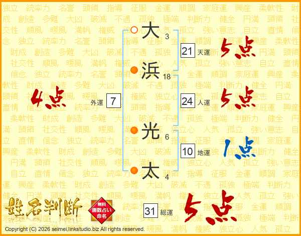 大(3画)浜(18画) 光(6画)太(4画)