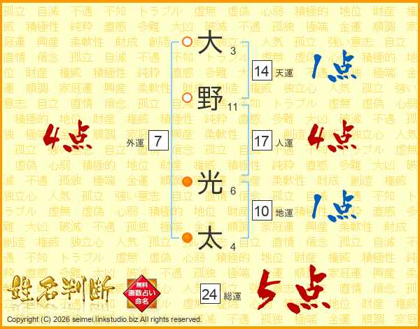 大野光太さんの総運は24画の5点!
