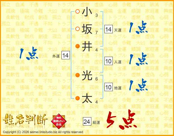 小(3画)坂(7画)井(4画) 光(6画)太(4画)