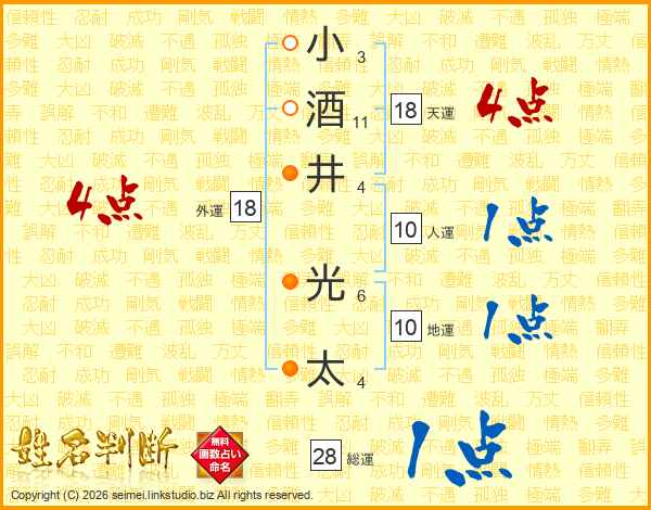 小酒井光太さんの総運は28画の1点!